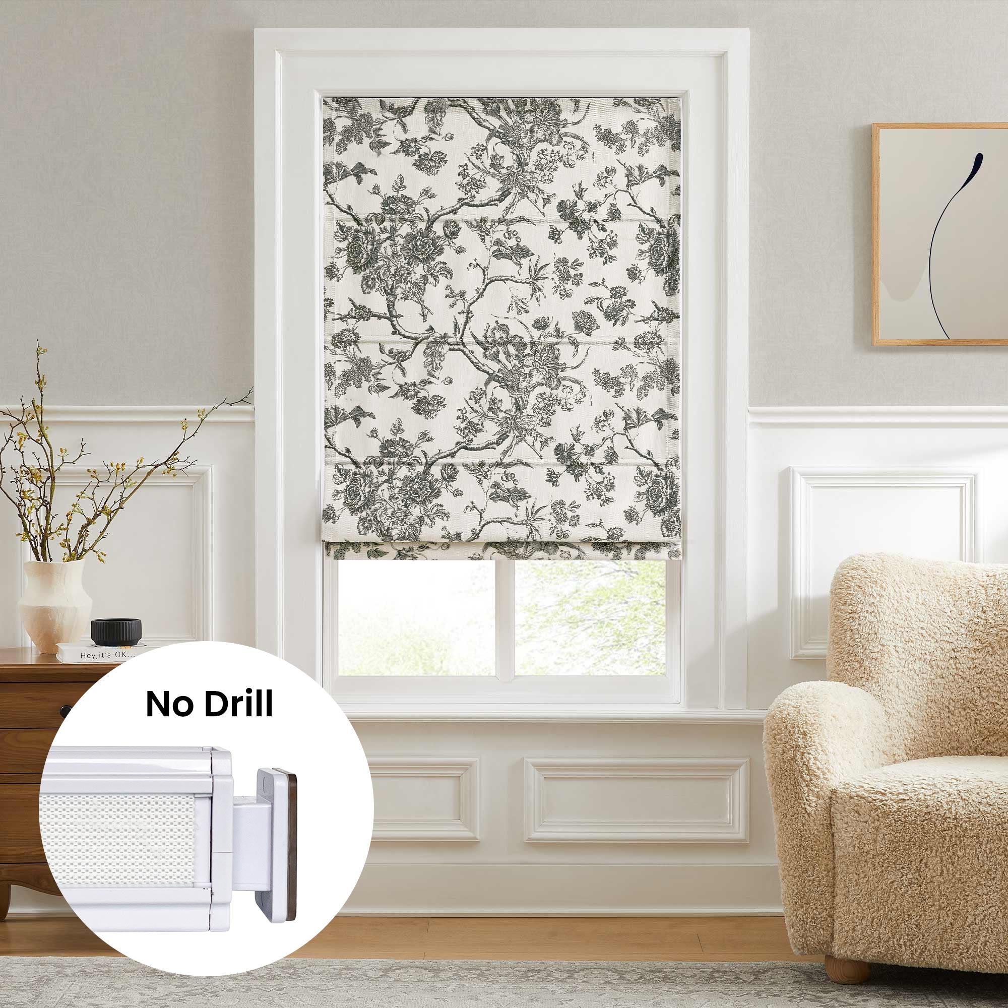 Jolie Toile De Jouy Patterned No Drill Roman Shades